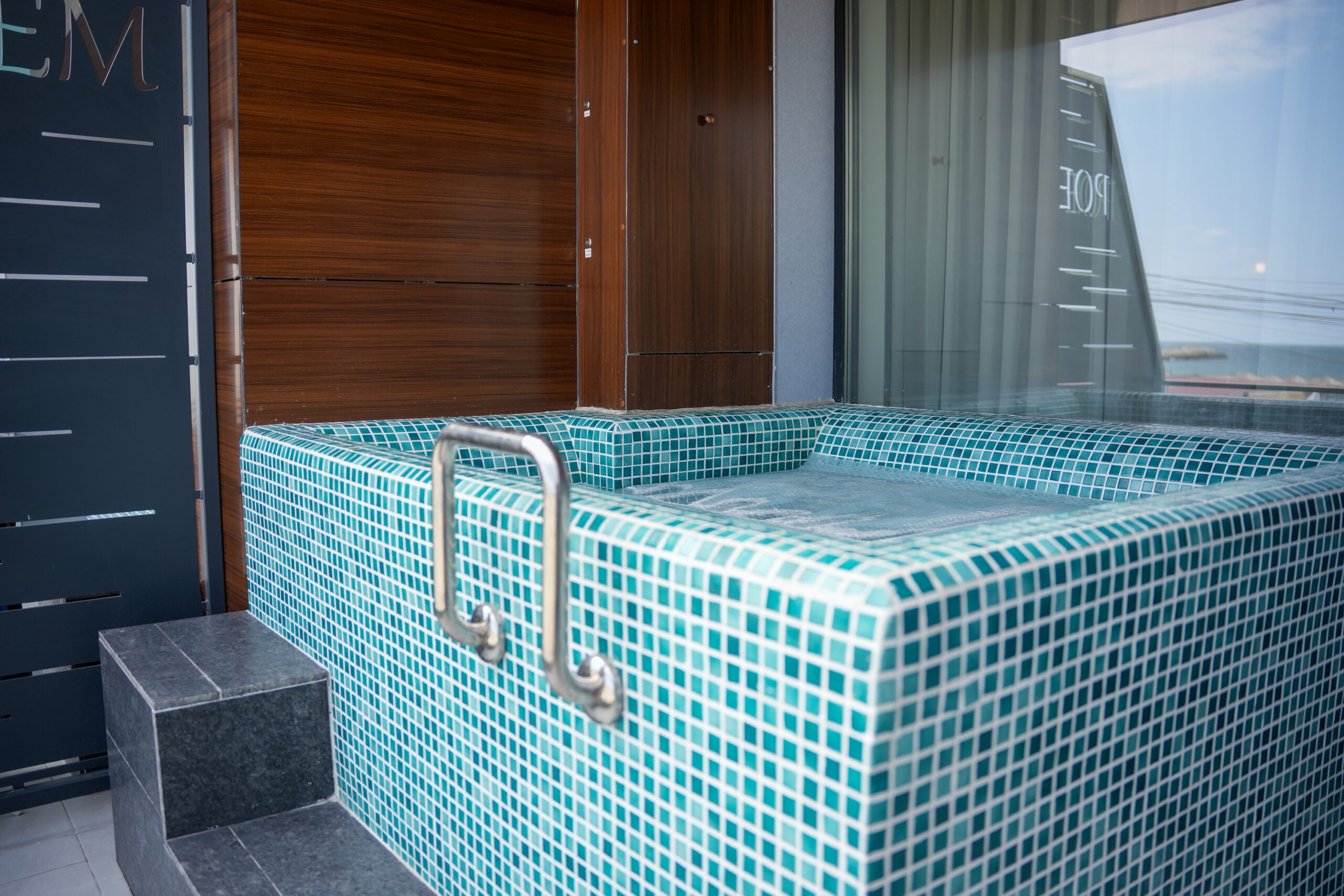 Jacuzzi privat pe balcon cu o vedere panoramica asupra marii. Suprafața camerei: Aproximativ 22 mp.